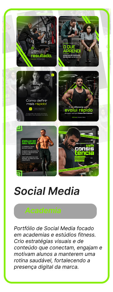 Transformo o seu feed em um ambiente visualmente clean, moderno e estratégico, utilizando a paleta de cores ideal para atrair, engajar e converter. Do conceito à publicação, sua marca terá uma estética impecável com foco na produtividade digital."